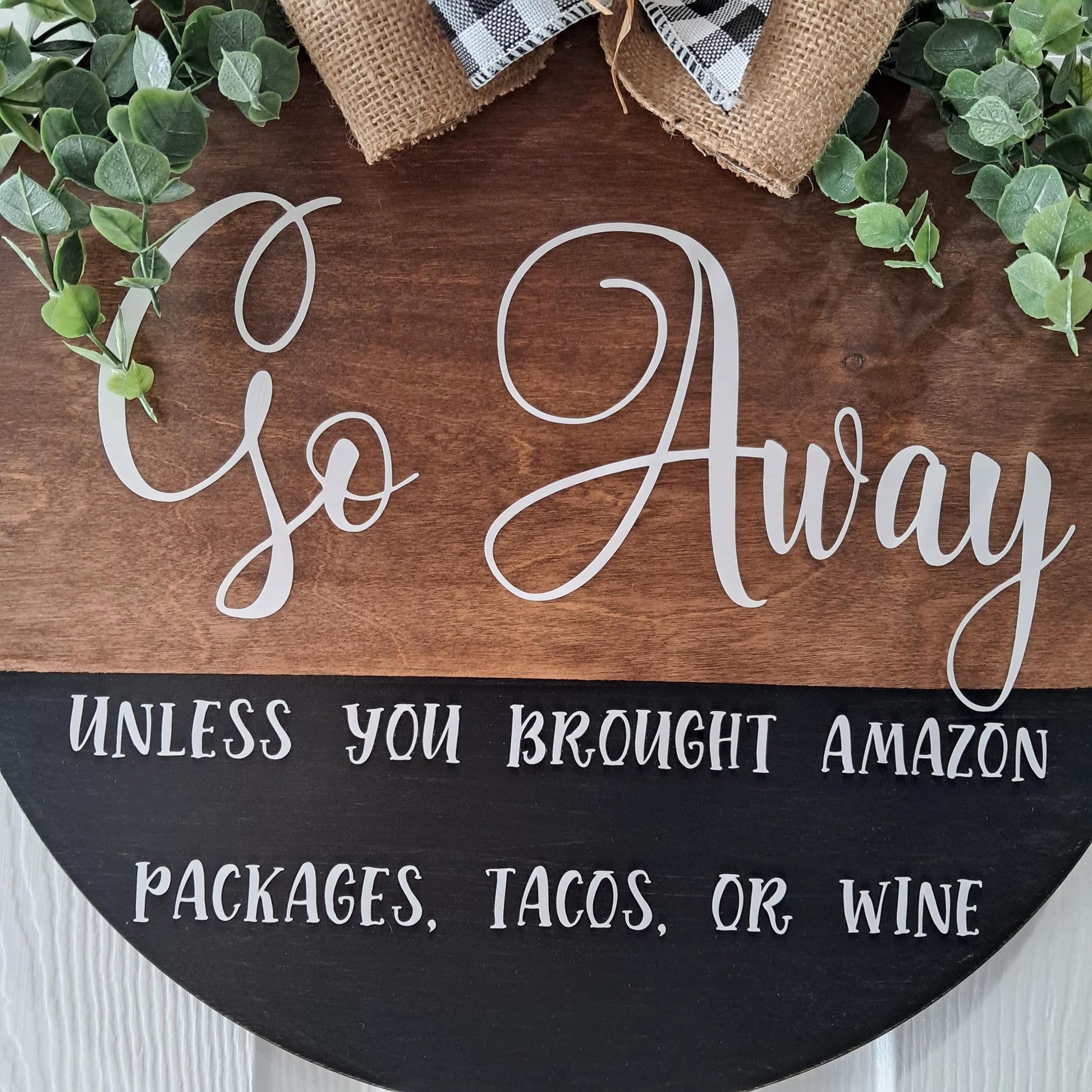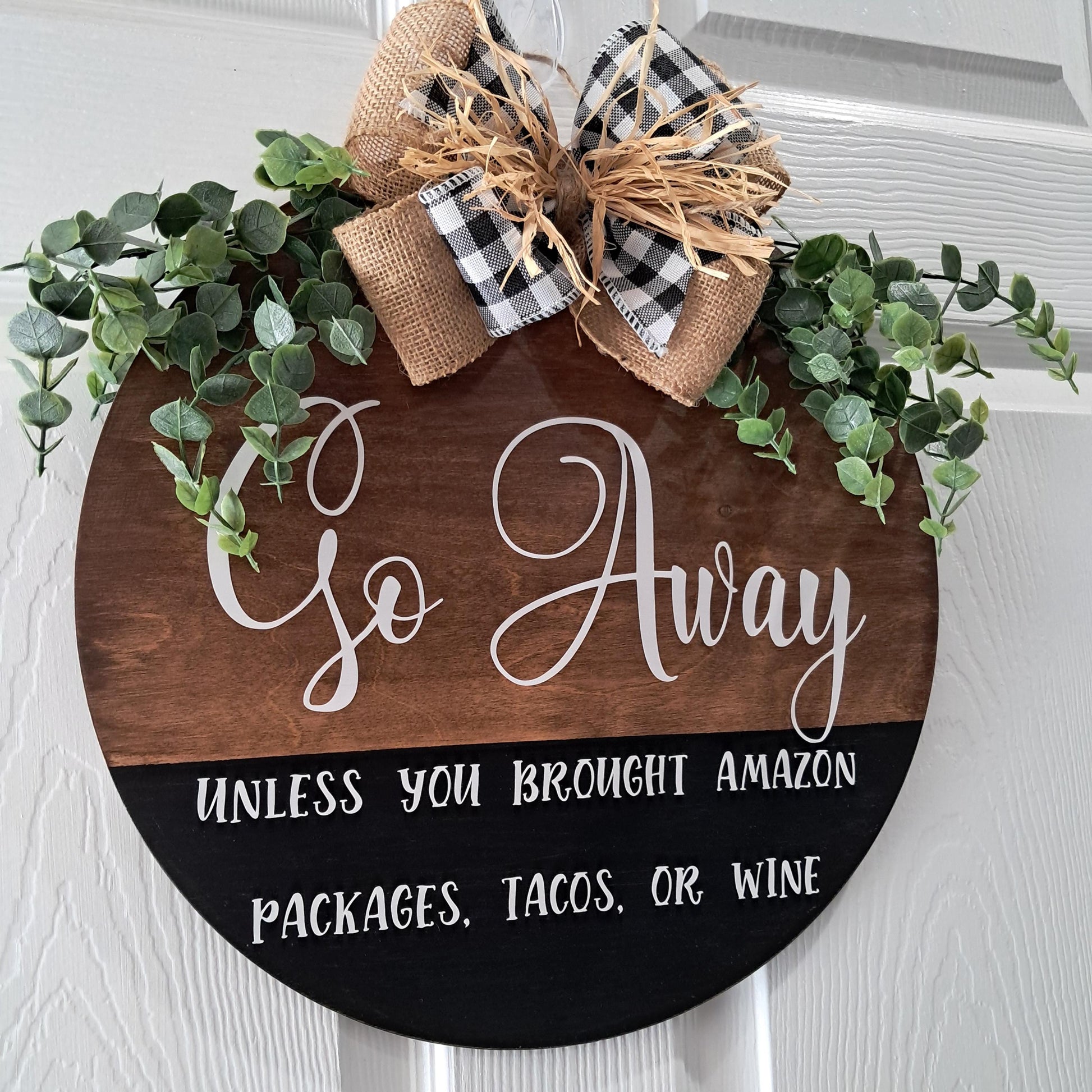 Funny “Go Away” Door Hanger – Rustic Wooden Sign – One-of-a-Kind Front Door Decor – Handmade Sign